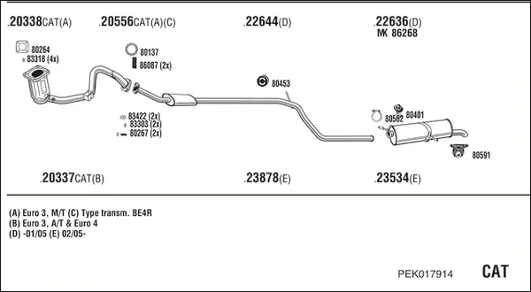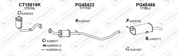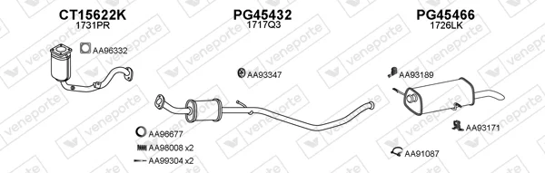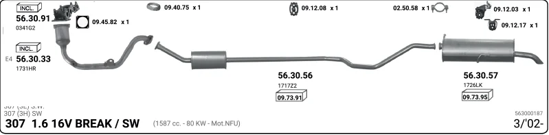 PEUGEOT 307 Break (3E) 1.6 16V - Výfukový systém - kompletní od 3/2002 do 4/2008, 1587 ccm, 80 kW, 109 hp, NFU (TU5JP4), kombi