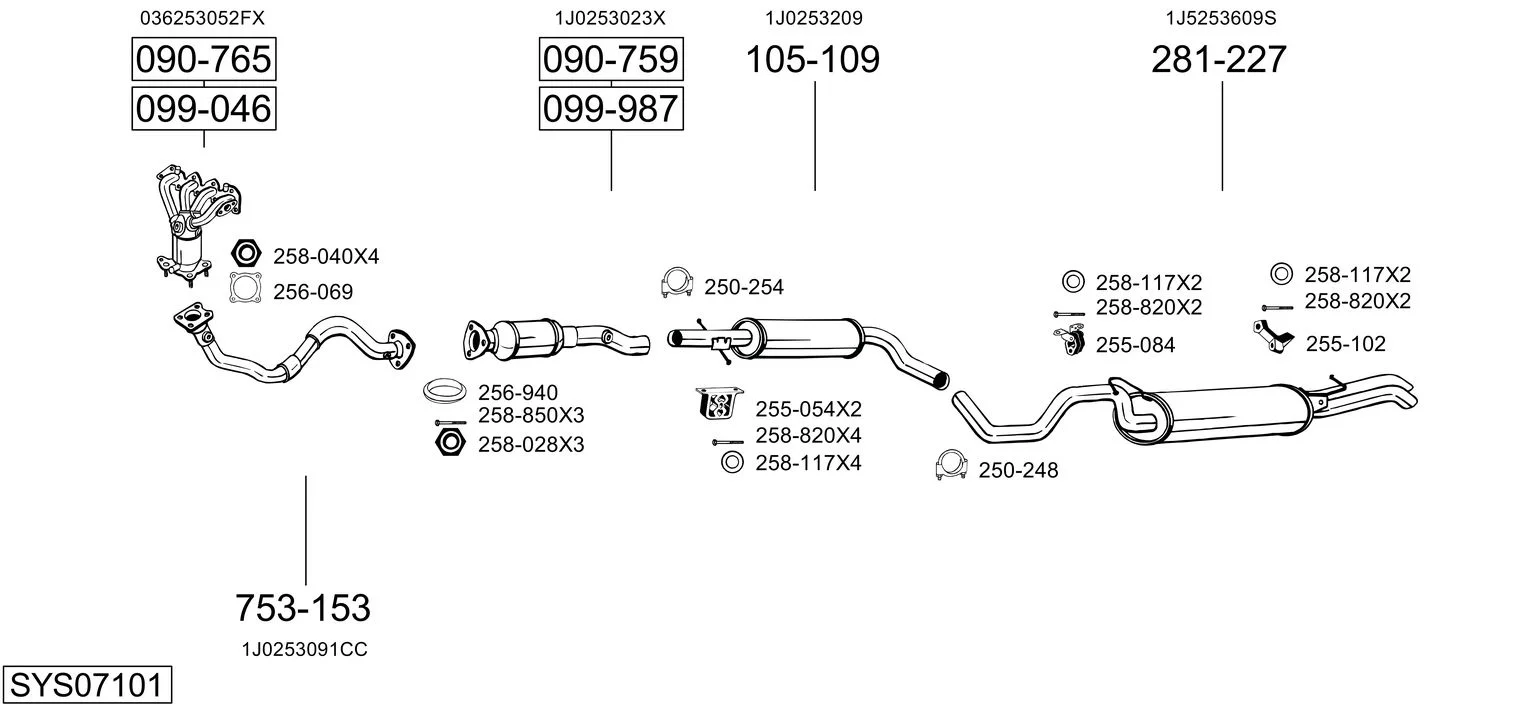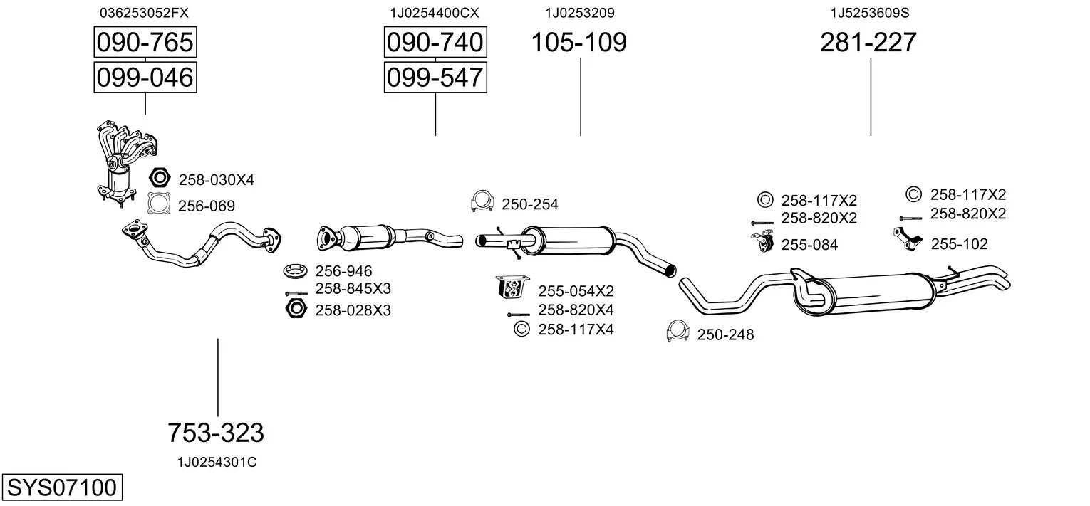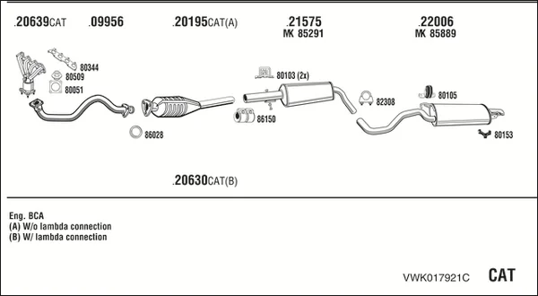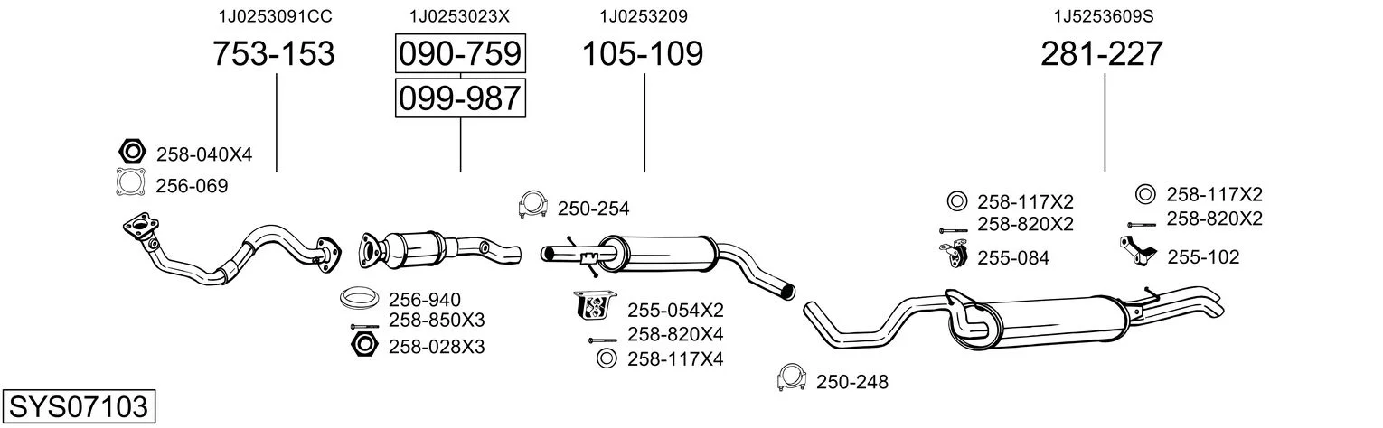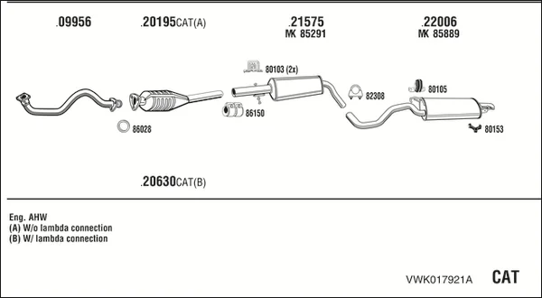 VW BORA Variant (1J6) 1.4 16V - Výfukový systém - kompletní od 9/2001 do 5/2005, 1390 ccm, 55 kW, 75 hp, AHW, AKQ, APE, AXP, BCA, kombi