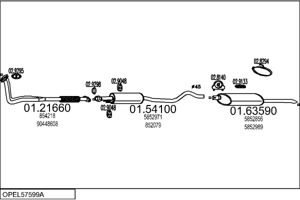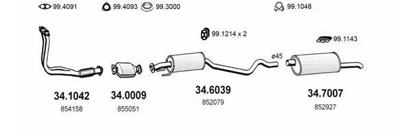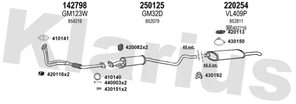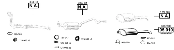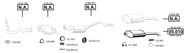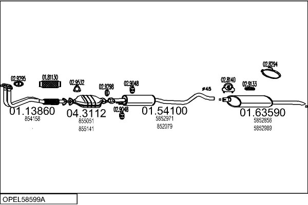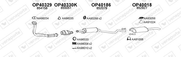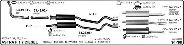 OPEL ASTRA F limuzína (T92) 1.7 D (F19, M19) - Výfukový systém - kompletní od 3/1992 do 9/1992, 1699 ccm, 42 kW, 57 hp, 17 D, limuzína