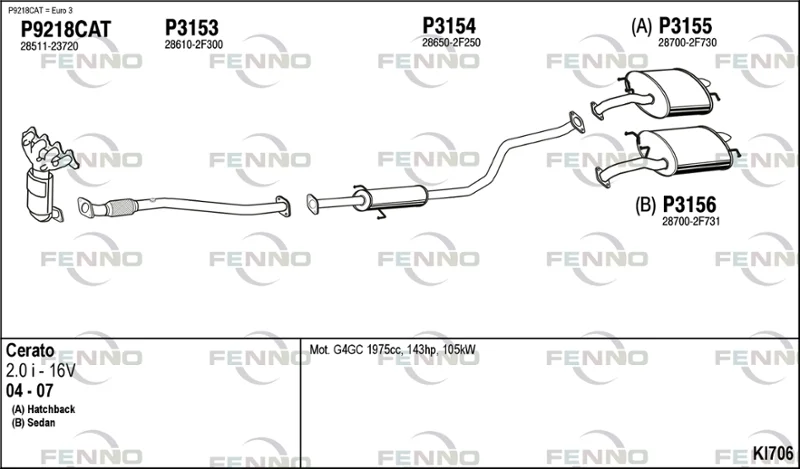 KIA CERATO I limuzína (LD) 2.0 - Výfukový systém - kompletní od 4/2004 do 1/2007, 1975 ccm, 105 kW, 143 hp, G4GC, limuzína