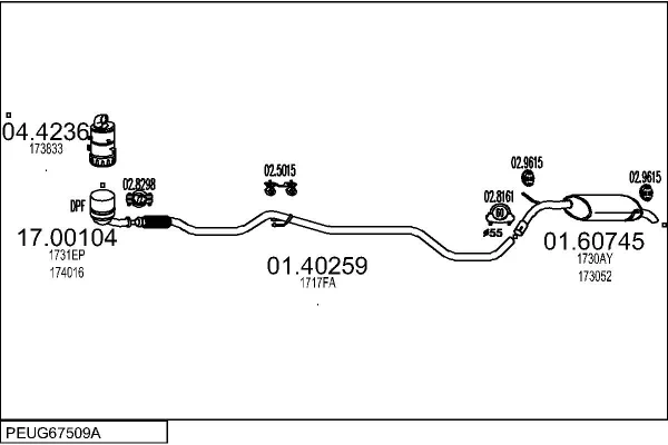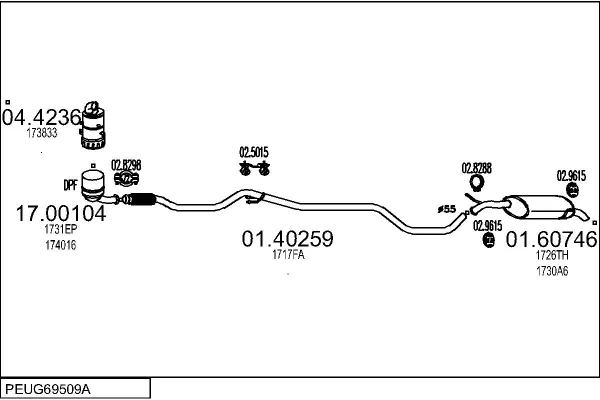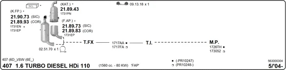 PEUGEOT 407 (6D_) 1.6 HDi 110 (6D9HZC, 6D9HYC) - Výfukový systém - kompletní od 5/2004 do 12/2010, 1560 ccm, 80 kW, 109 hp, 9HY (DV6TED4), 9HZ (DV6TED4), limuzína