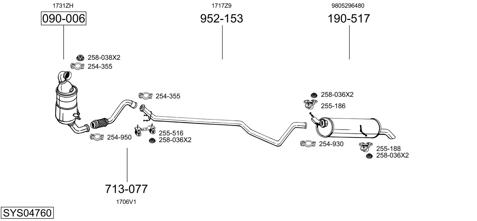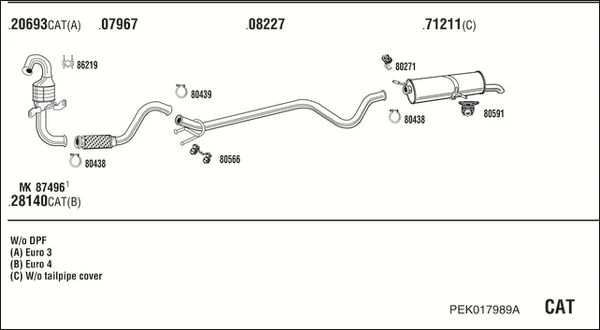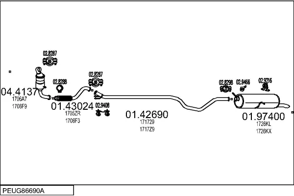 PEUGEOT 307 (3A/C) 1.6 HDi 110 - Výfukový systém - kompletní od 2/2004 do 3/2009, 1560 ccm, 80 kW, 109 hp, 9HY (DV6TED4), 9HZ (DV6TED4), Šikmá zadní část