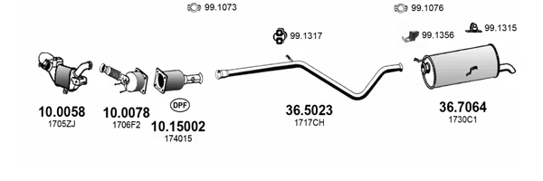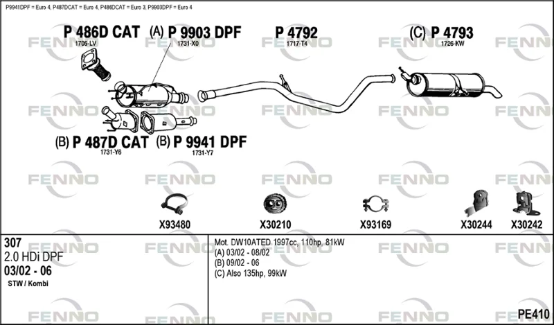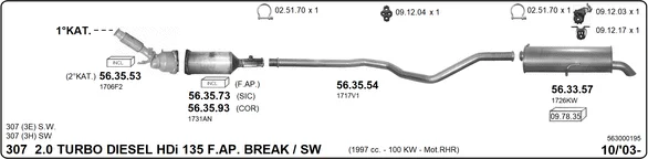 PEUGEOT 307 Break (3E) 2.0 HDi 135 - Výfukový systém - kompletní od 2/2004 do 4/2008, 1997 ccm, 100 kW, 136 hp, RHR (DW10BTED4), kombi