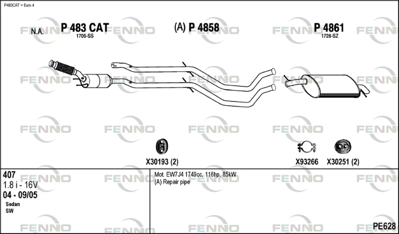 PEUGEOT 407 SW (6E_, 6D_) 1.8 - Výfukový systém - kompletní od 5/2004 do 7/2005, 1749 ccm, 85 kW, 116 hp, 6FZ (EW7J4), kombi