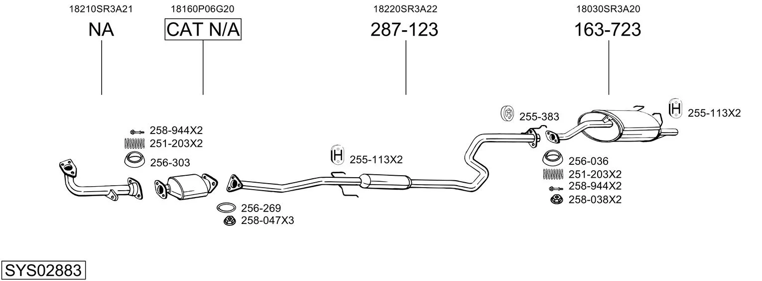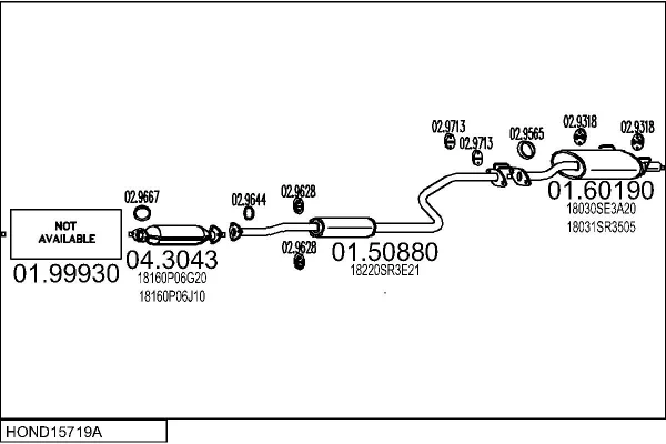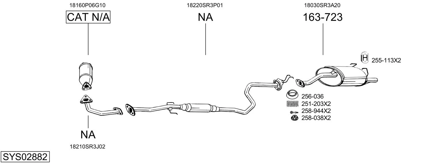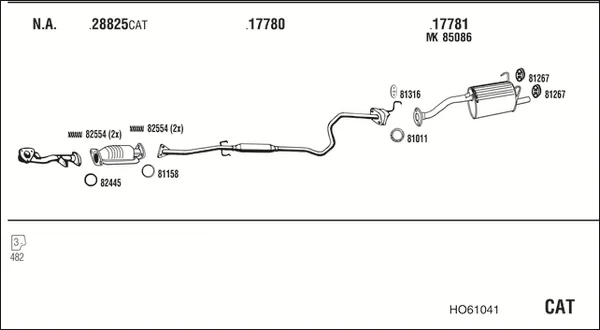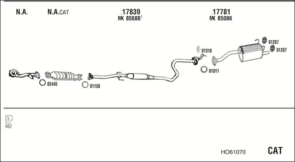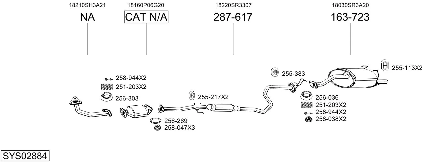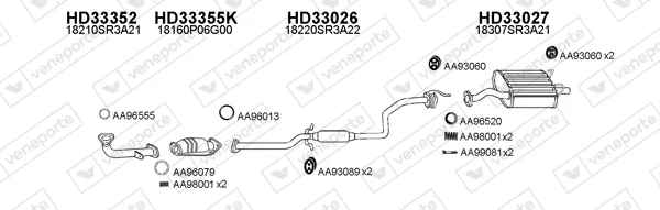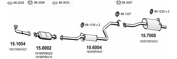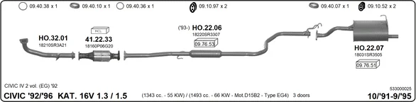 HONDA CIVIC V Hatchback (EG) 1.5 i 16V (EG4) - Výfukový systém - kompletní od 10/1991 do 11/1995, 1493 ccm, 66 kW, 90 hp, D15B2, D15B3, D15B4, D15Z1, D15Z2, Šikmá zadní část
