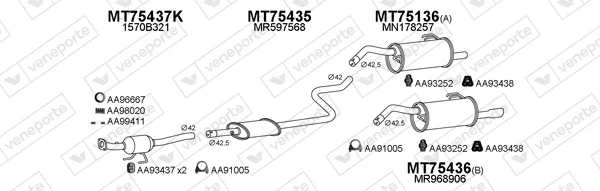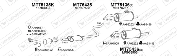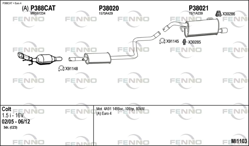 MITSUBISHI COLT VI (Z3_A, Z2_A) 1.5 (Z23A) - Výfukový systém - kompletní od 6/2004 do 6/2012, 1499 ccm, 80 kW, 109 hp, 4A91, M 135.950 (4A91), Šikmá zadní část
