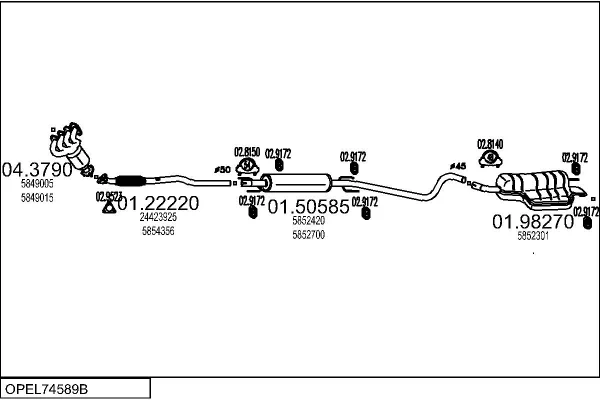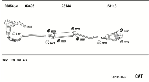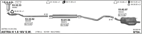 OPEL ASTRA H kombi (A04) 1.8 (L35) - Výfukový systém - kompletní od 8/2004 do 10/2010, 1796 ccm, 92 kW, 125 hp, Z 18 XE, kombi