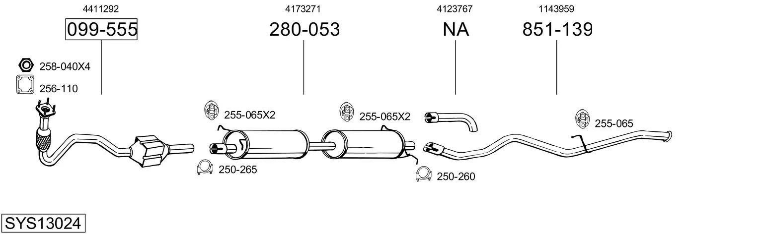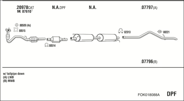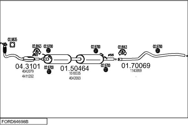 FORD TRANSIT valník/podvozek (FM_ _, FN_ _) 2.4 TDE - Výfukový systém - kompletní od 3/2004 do 5/2006, 2402 ccm, 85 kW, 115 hp, FXFA, valník/podvozek