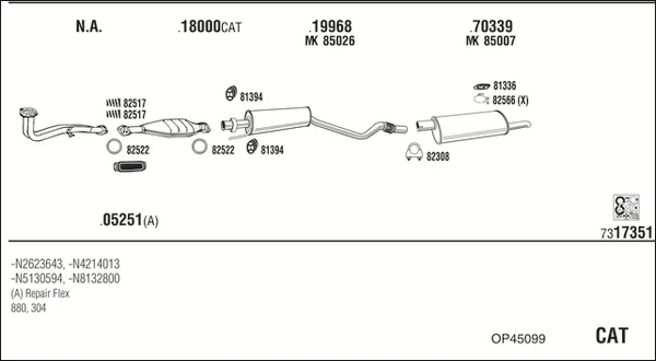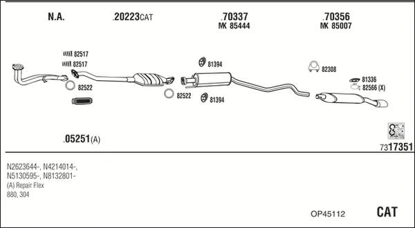 OPEL ASTRA F limuzína (T92) 1.6 Si (F19, M19) - Výfukový systém - kompletní od 5/1992 do 12/1994, 1598 ccm, 74 kW, 100 hp, C 16 SE, limuzína