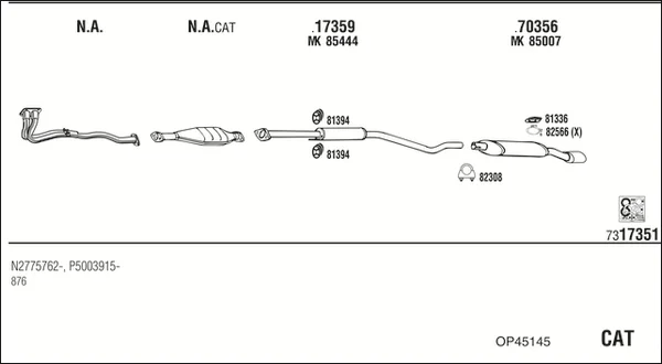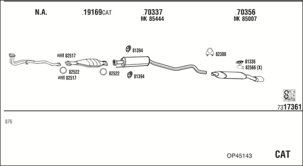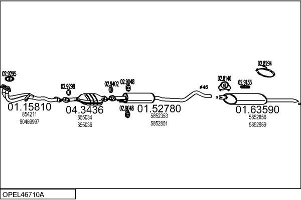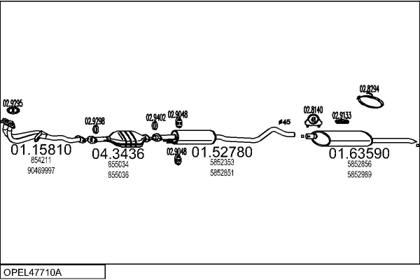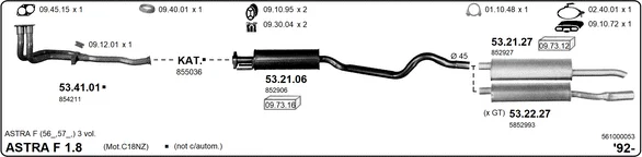 OPEL ASTRA F limuzína (T92) 1.8 i (F19, M19) - Výfukový systém - kompletní od 3/1992 do 9/1998, 1796 ccm, 66 kW, 90 hp, C 18 NZ, limuzína