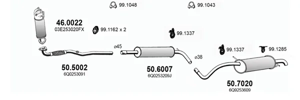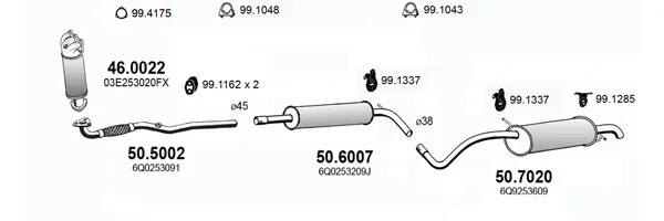 SKODA FABIA I limuzína (6Y3) 1.2 - Výfukový systém - kompletní od 7/2001 do 12/2007, 1198 ccm, 40 kW, 54 hp, AWY, BMD, limuzína