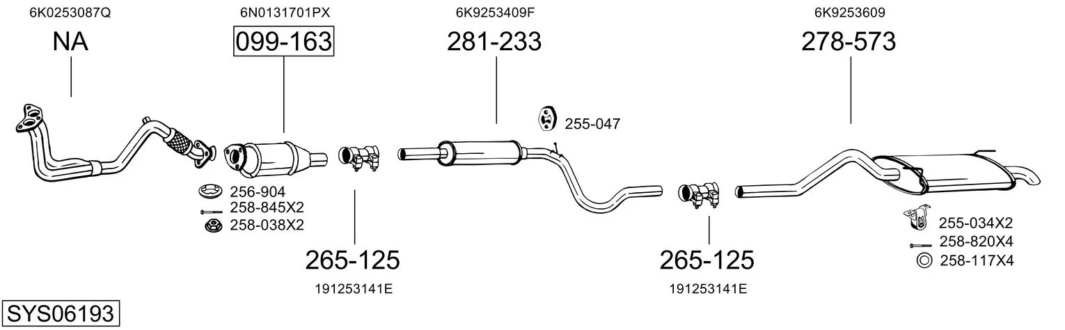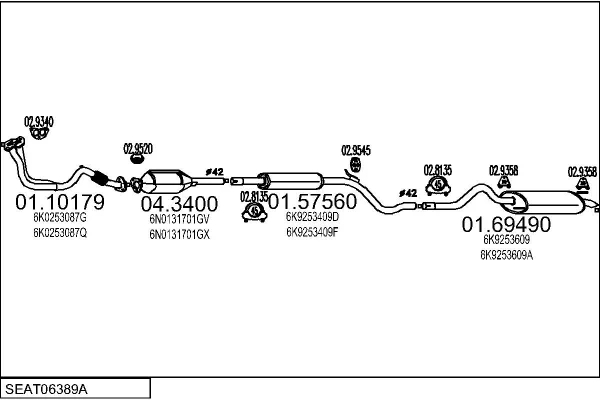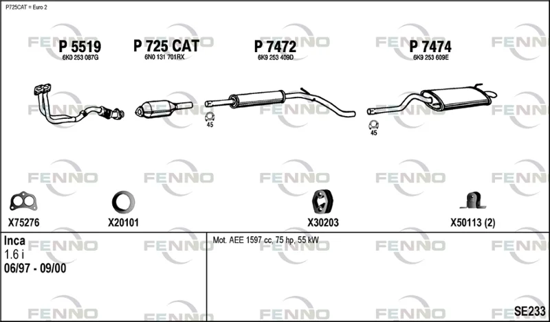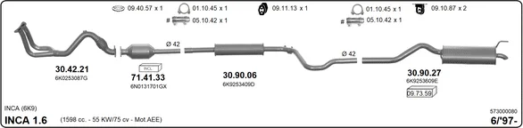 SEAT INCA (6K9) 1.6 i - Výfukový systém - kompletní od 6/1997 do 9/2000, 1598 ccm, 55 kW, 75 hp, AEE, ALM, karoserie/kombi