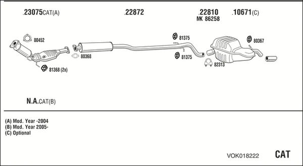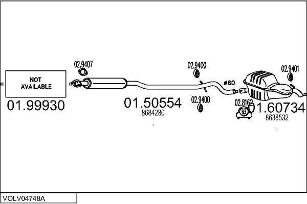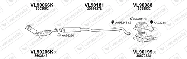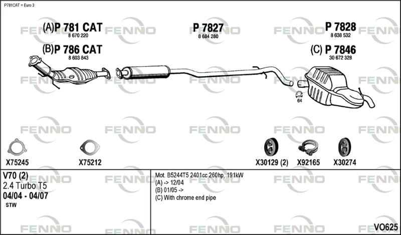 VOLVO V70 II (285) T5 - Výfukový systém - kompletní od 4/2004 do 8/2007, 2401 ccm, 191 kW, 260 hp, B 5244 T5, kombi