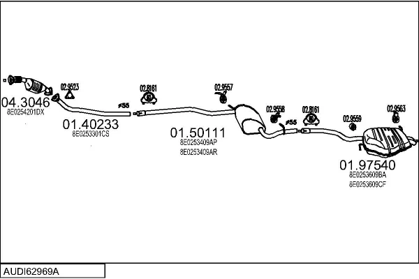AUDI A4 B6 Avant (8E5) 1.9 TDI - Výfukový systém - kompletní od 6/2004 do 12/2004, 1896 ccm, 85 kW, 116 hp, BKE, kombi