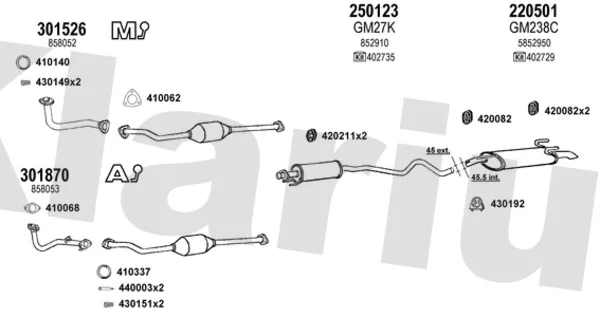 OPEL ASTRA F kombi (T92) 1.6 i (F35, M35) - Výfukový systém - kompletní od 9/1991 do 1/1998, 1598 ccm, 55 kW, 75 hp, C 16 NZ, X 16 SZR, kombi