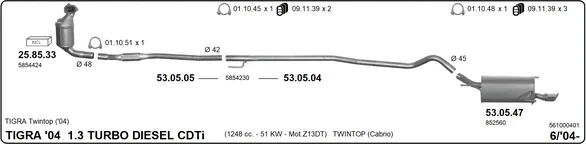 OPEL TIGRA TwinTop (X04) 1.3 CDTI (R97) - Výfukový systém - kompletní od 6/2004 do 12/2010, 1248 ccm, 51 kW, 69 hp, Z 13 DT, Kabriolet