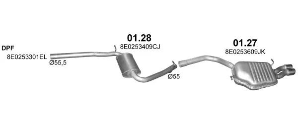AUDI A4 B7 (8EC) 2.0 TDI - Výfukový systém - kompletní od 11/2004 do 6/2008, 1968 ccm, 100 kW, 136 hp, BNA, BRF, limuzína