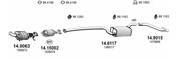 FORD FOCUS II (DA_, HCP, DP) 2.0 TDCi - Výfukový systém - kompletní od 7/2004 do 9/2012, 1997 ccm, 100 kW, 136 hp, G6DA, G6DB, G6DD, G6DG, Šikmá zadní část