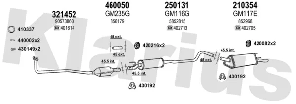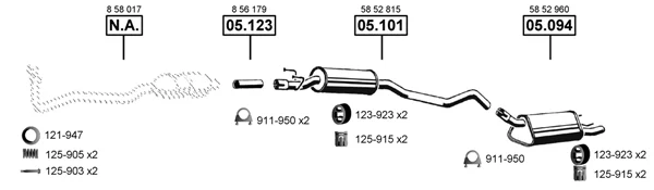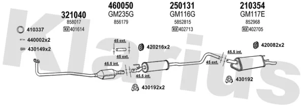 OPEL CORSA B (S93) 1.2 i (F08, F68, M68) - Výfukový systém - kompletní od 3/1993 do 9/2000, 1195 ccm, 33 kW, 45 hp, C 12 NZ, X 12 SZ, Šikmá zadní část