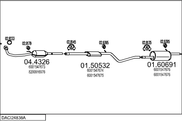 DACIA LOGAN (LS_) 1.6 (LSOB, LSOD, LSOF, LSOH) - Výfukový systém - kompletní od 9/2004, 1598 ccm, 64 kW, 87 hp, K7M 710, K7M 718, limuzína