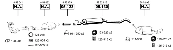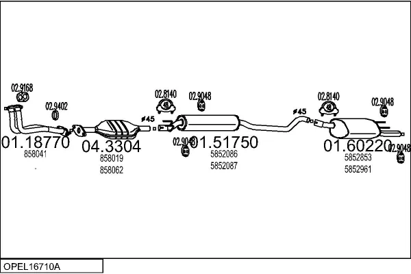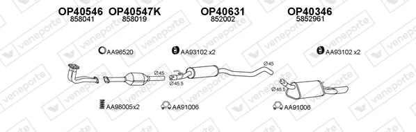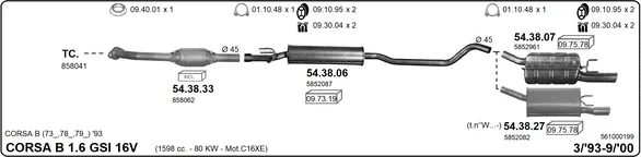 OPEL CORSA B (S93) 1.6 GSI 16V (F08, F68, M68) - Výfukový systém - kompletní od 3/1993 do 9/2000, 1598 ccm, 80 kW, 109 hp, C 16 XE, Šikmá zadní část