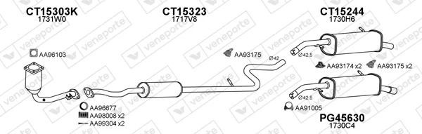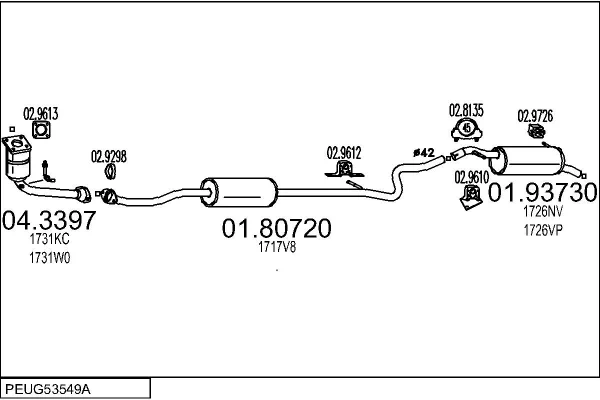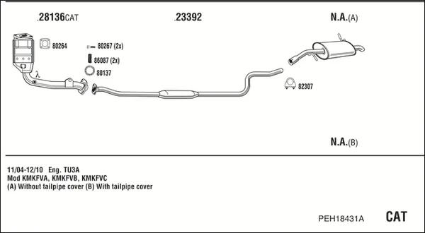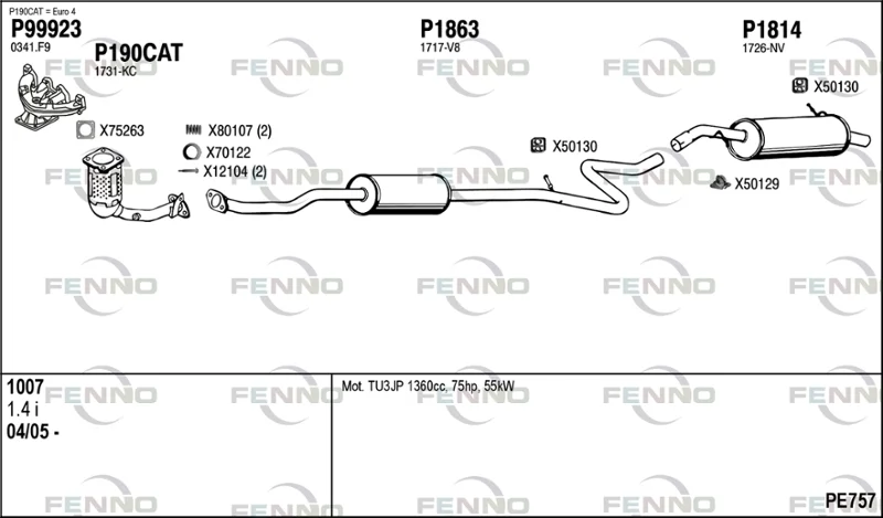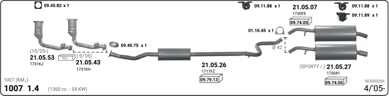 PEUGEOT 1007 (KM_) 1.4 - Výfukový systém - kompletní od 4/2005, 1360 ccm, 54 kW, 75 hp, KFV (TU3A), KFV (TU3JP), Šikmá zadní část