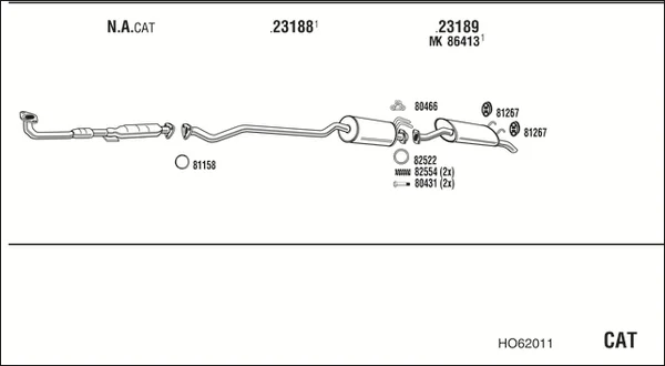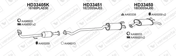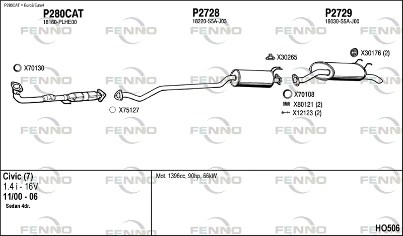 HONDA CIVIC VII limuzína (ES, ET) 1.4 (ES4) - Výfukový systém - kompletní od 12/2000 do 9/2005, 1396 ccm, 66 kW, 90 hp, D14Z5, limuzína