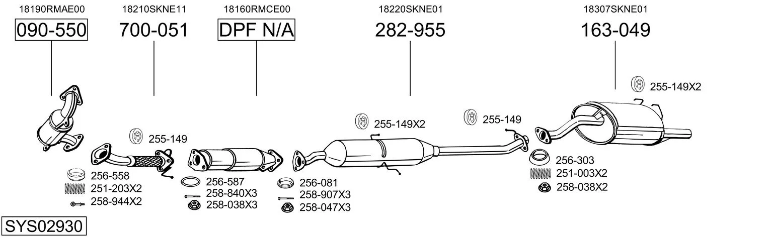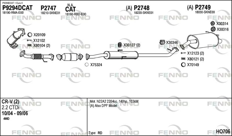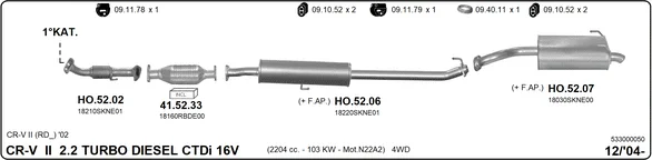 HONDA CR-V II (RD_) 2.2 CTDi (RD9) - Výfukový systém - kompletní od 2/2005 do 9/2006, 2204 ccm, 103 kW, 140 hp, N22A2, SUV