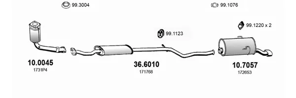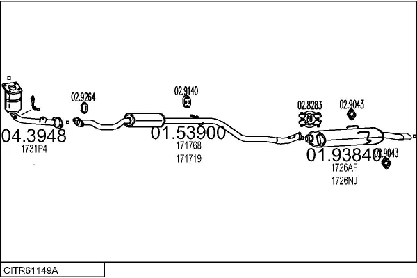 CITROËN SAXO (S0, S1) 1.6 VTS - Výfukový systém - kompletní od 9/2000 do 9/2003, 1587 ccm, 72 kW, 98 hp, NFT (TU5JP), Šikmá zadní část