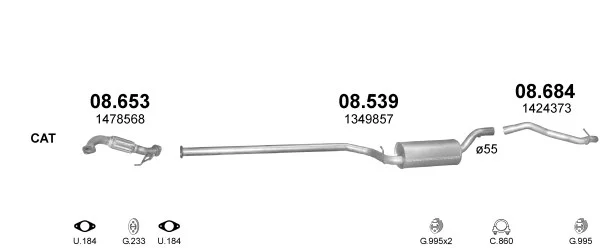 FORD FOCUS C-MAX (DM2) 1.6 TDCi - Výfukový systém - kompletní