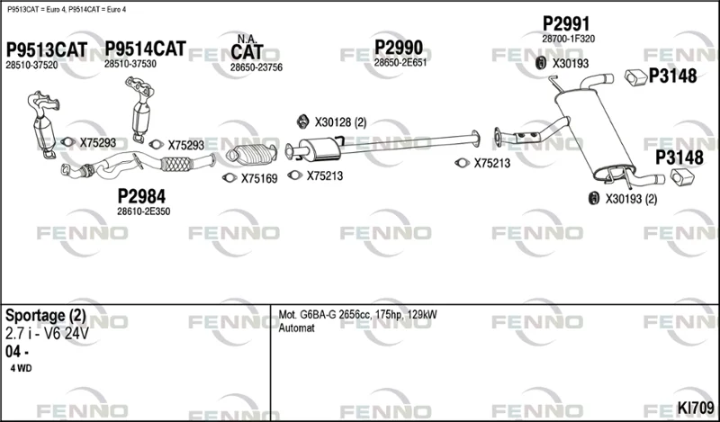 KIA SPORTAGE II (JE_, KM_) 2.7 V6 4WD - Výfukový systém - kompletní od 9/2004 do 8/2010, 2656 ccm, 129 kW, 175 hp, G6BA, SUV