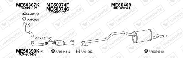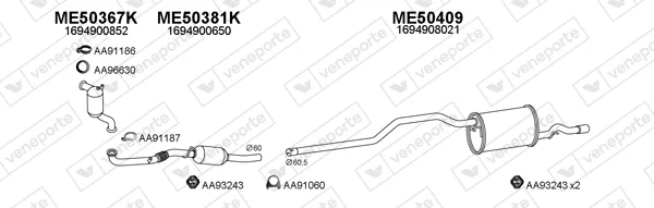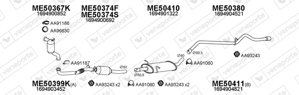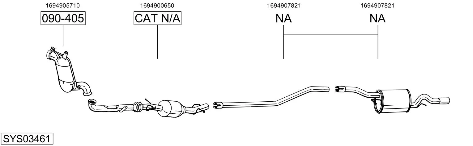 MERCEDES-BENZ B-CLASS Sports Tourer (W245) B 200 CDI (245.208) - Výfukový systém - kompletní od 3/2005 do 11/2011, 1991 ccm, 103 kW, 140 hp, OM 640.941, Šikmá zadní část