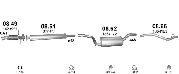 FORD FOCUS II Turnier (DA_, FFS, DS) 2.0 - Výfukový systém - kompletní od 7/2004 do 9/2012, 1999 ccm, 107 kW, 145 hp, AODA, AODB, AODE, SYDA, kombi