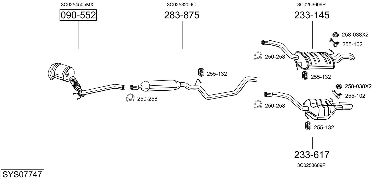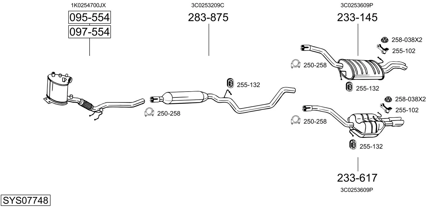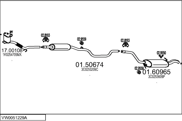 VW PASSAT B6 (3C2) 1.9 TDI - Výfukový systém - kompletní od 3/2005 do 7/2010, 1896 ccm, 77 kW, 105 hp, BKC, BLS, BXE, limuzína