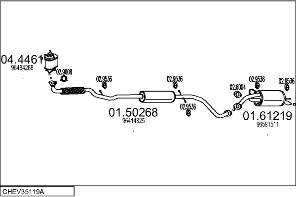 CHEVROLET MATIZ (M200, M250) 1.0 - Výfukový systém - kompletní od 3/2005 do 12/2007, 995 ccm, 47 kW, 64 hp, LQ4(61CUL4), Šikmá zadní část