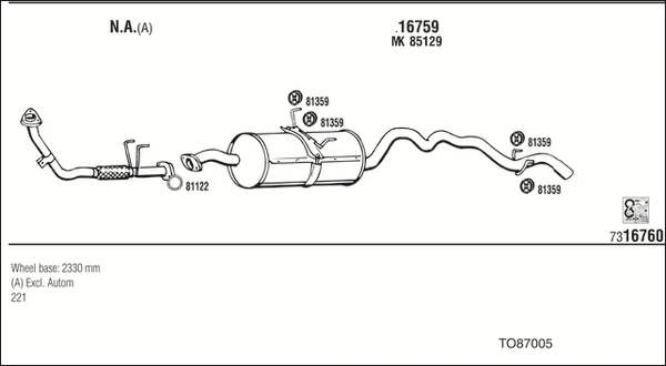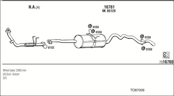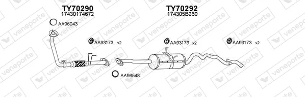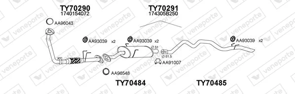 TOYOTA HIACE IV Krabice (_H1_) 2.4 D 4WD (LH108, LH118) - Výfukový systém - kompletní od 8/1989 do 7/1999, 2446 ccm, 55 kW, 75 hp, 2L, Krabice