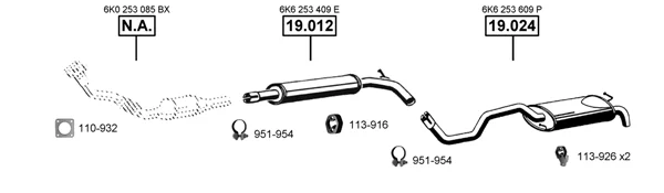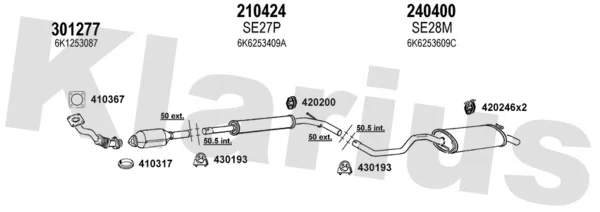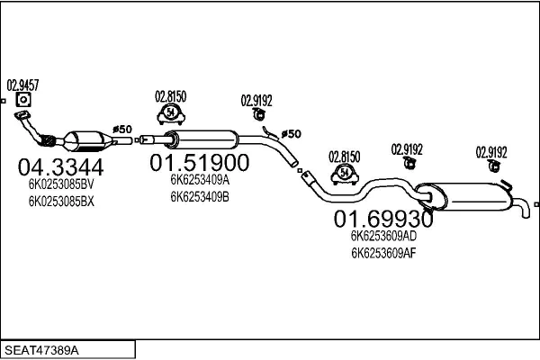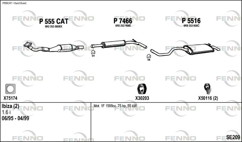 SEAT IBIZA II (6K1) 1.6 i - Výfukový systém - kompletní od 9/1994 do 6/1999, 1595 ccm, 55 kW, 75 hp, 1F, Šikmá zadní část