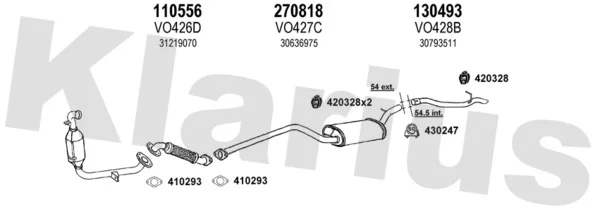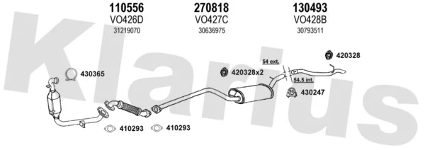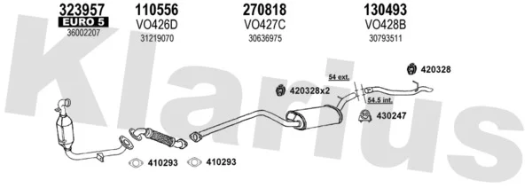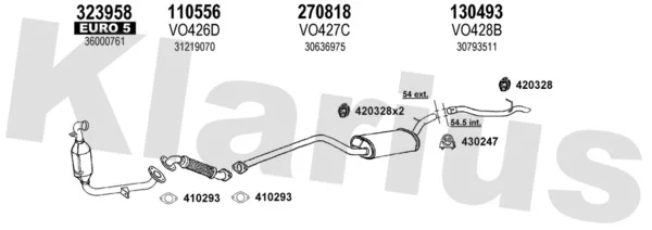 VOLVO S40 II (544) 1.6 D - Výfukový systém - kompletní od 1/2005 do 12/2012, 1560 ccm, 81 kW, 110 hp, D 4164 T, limuzína