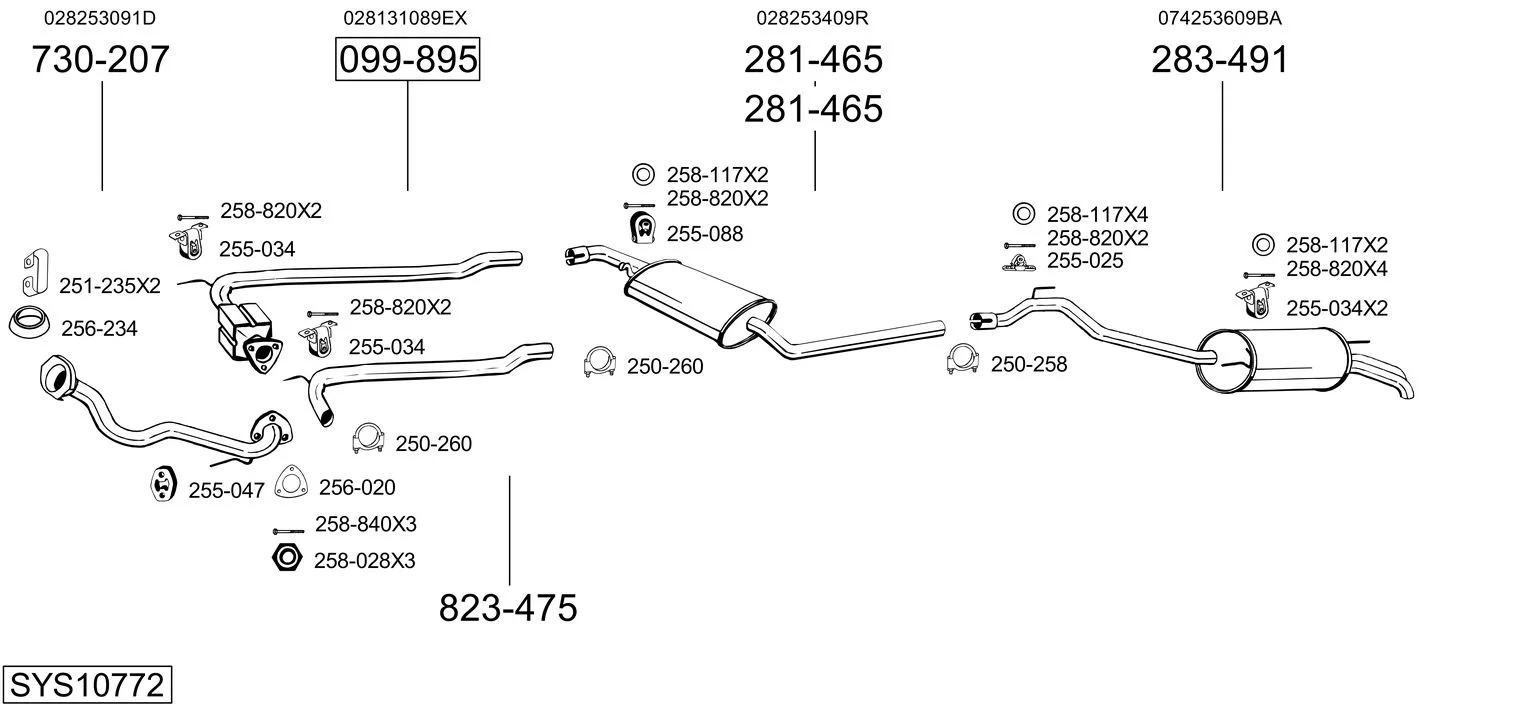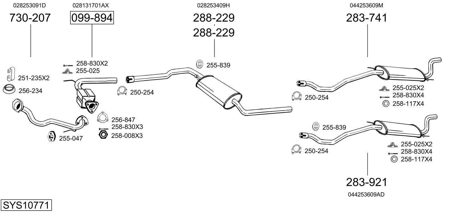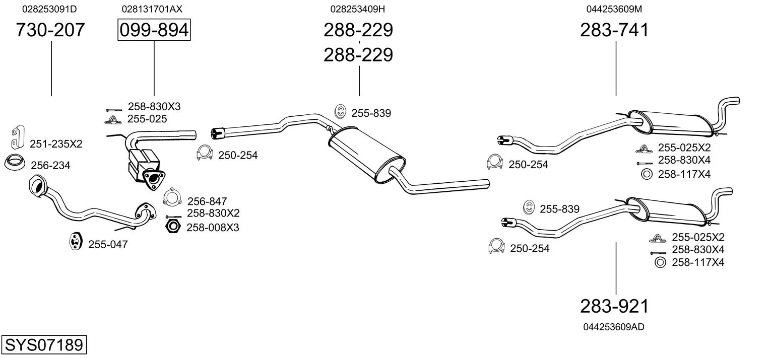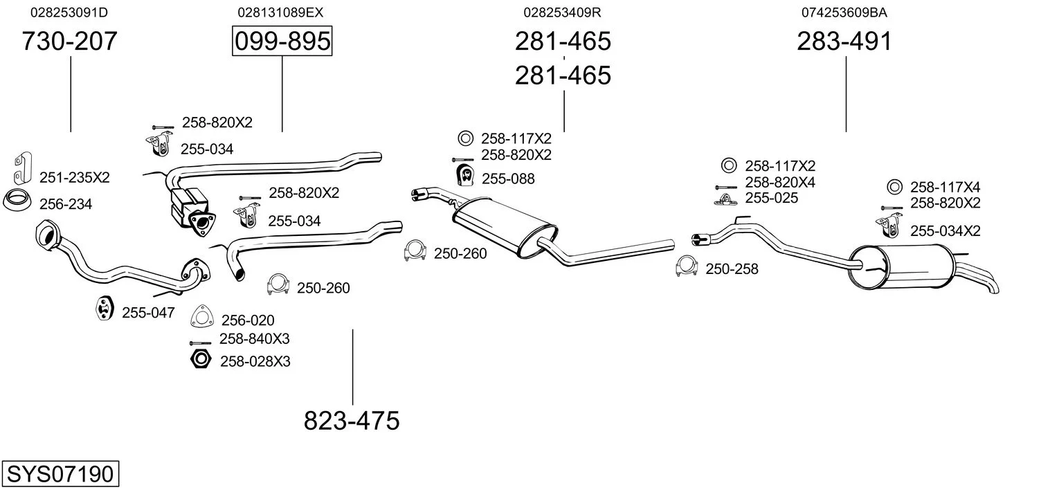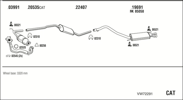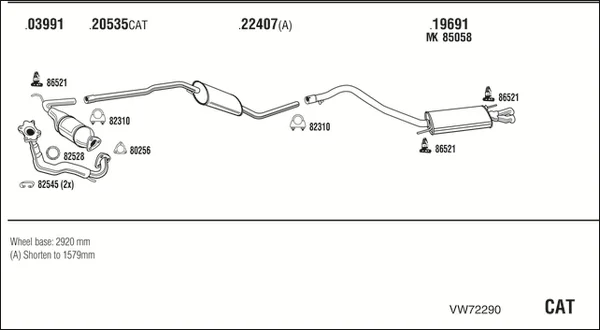 VW TRANSPORTER T4 autobus (70B, 70C, 7DB, 7DK, 70J, 70K, 7DC, 7 1.9 TD - Výfukový systém - kompletní od 10/1992 do 4/2003, 1896 ccm, 50 kW, 68 hp, ABL, autobus
