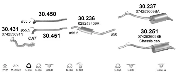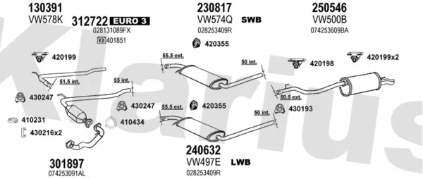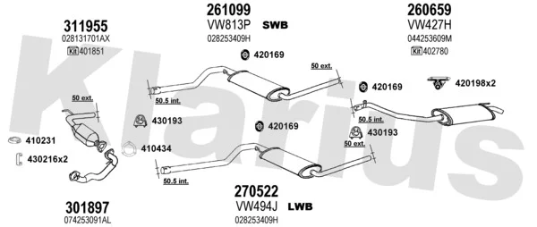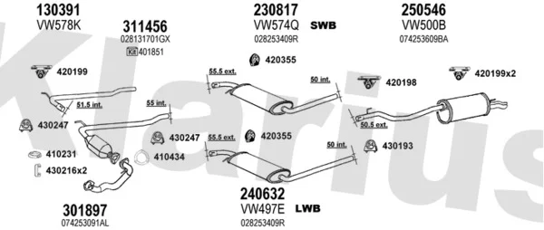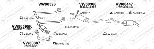 VW TRANSPORTER T4 autobus (70B, 70C, 7DB, 7DK, 70J, 70K, 7DC, 7 1.9 TD - Výfukový systém - kompletní od 10/1992 do 4/2003, 1896 ccm, 50 kW, 68 hp, ABL, autobus