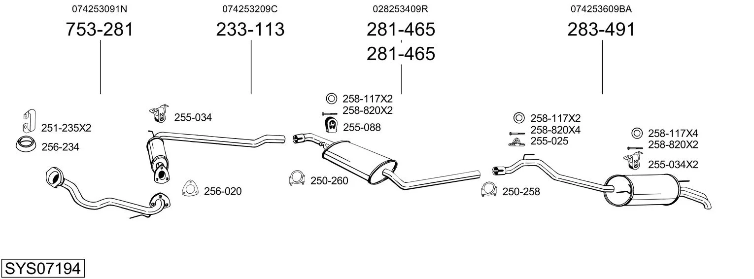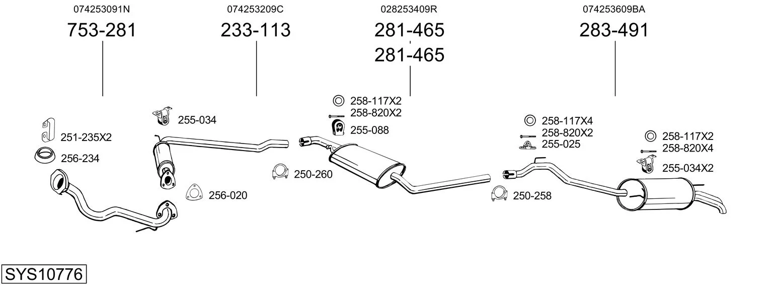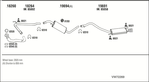 VW TRANSPORTER T4 autobus (70B, 70C, 7DB, 7DK, 70J, 70K, 7DC, 7 2.4 D - Výfukový systém - kompletní od 9/1990 do 4/1998, 2370 ccm, 57 kW, 78 hp, AAB, autobus