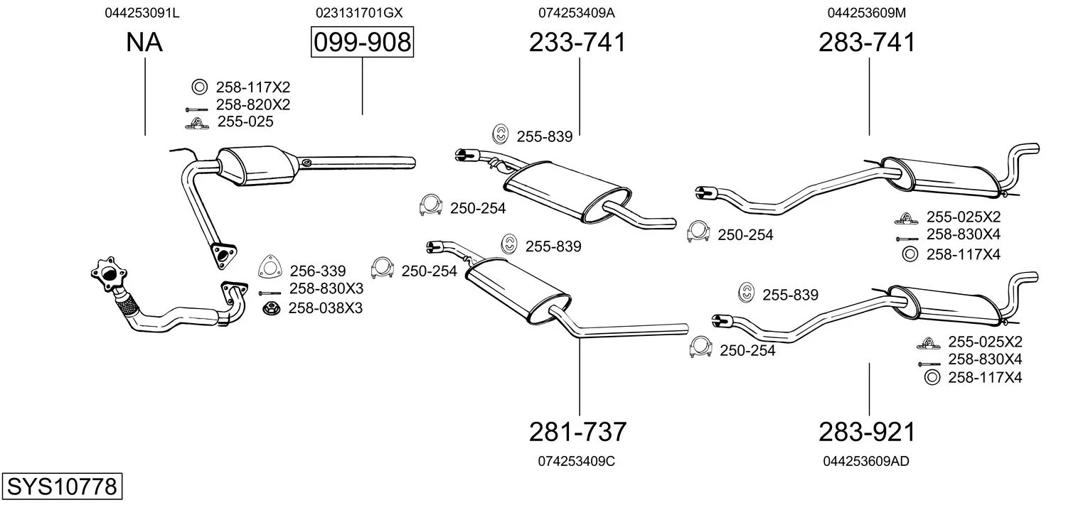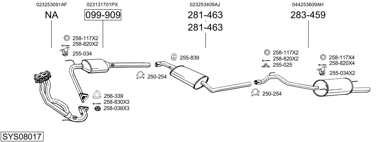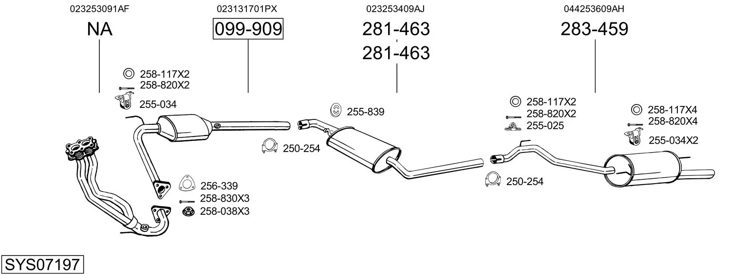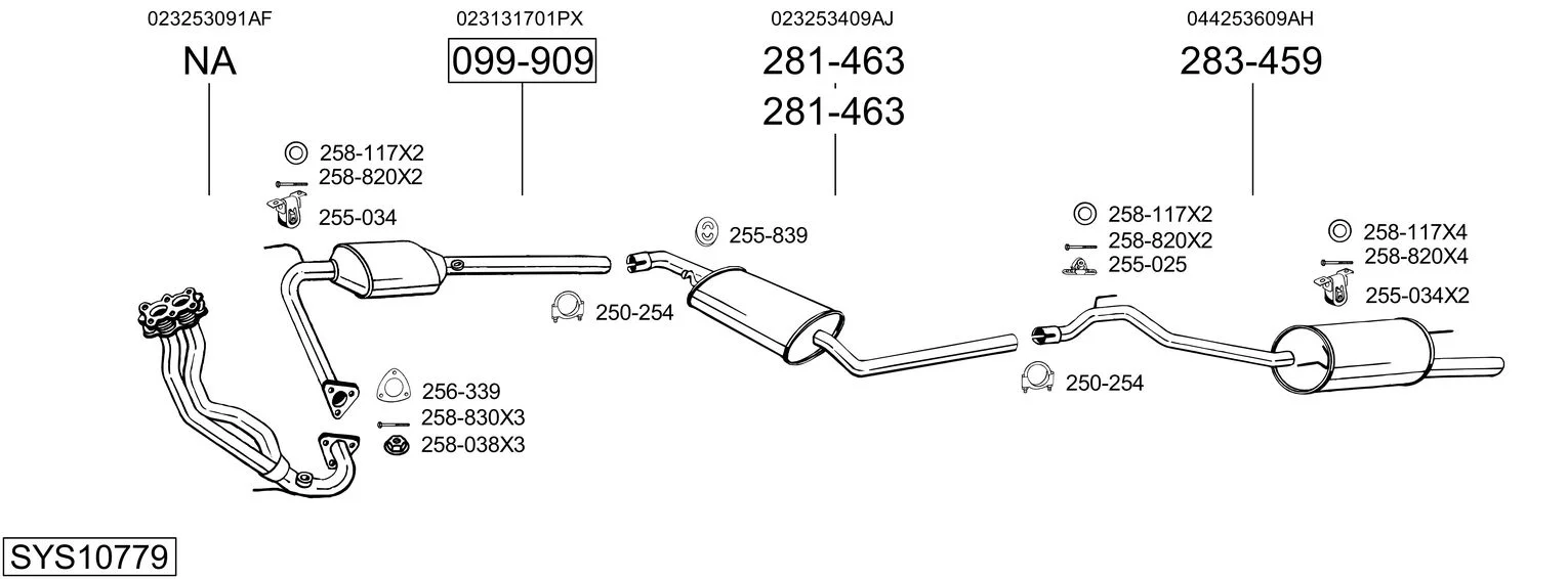 VW TRANSPORTER T4 autobus (70B, 70C, 7DB, 7DK, 70J, 70K, 7DC, 7 2.0 - Výfukový systém - kompletní od 9/1990 do 4/2003, 1968 ccm, 62 kW, 84 hp, AAC, autobus