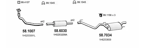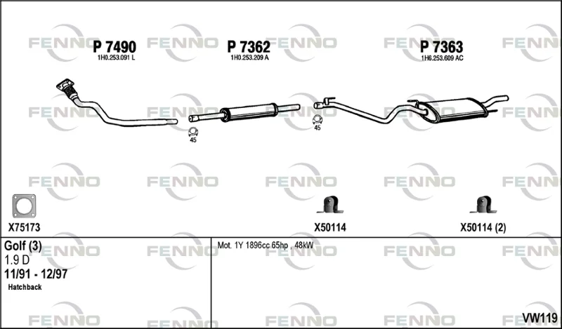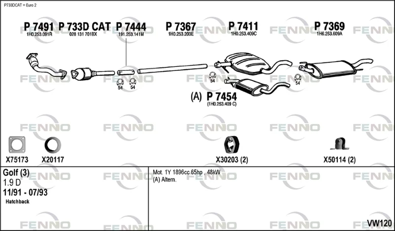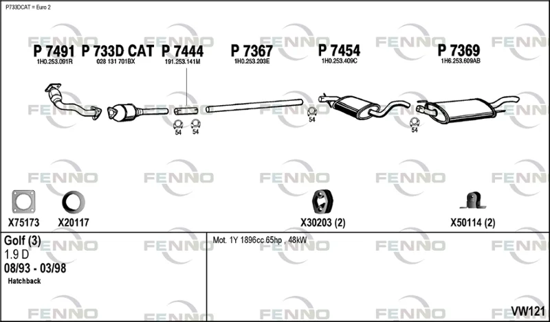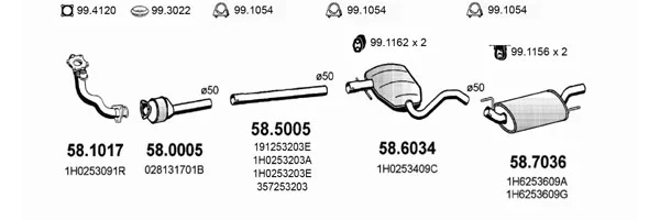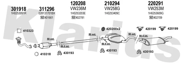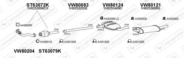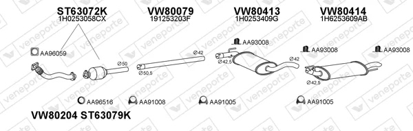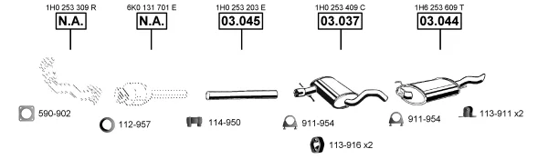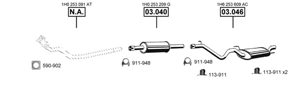 VW GOLF III (1H1) 1.9 D - Výfukový systém - kompletní od 11/1991 do 8/1997, 1896 ccm, 47 kW, 64 hp, 1Y, Šikmá zadní část