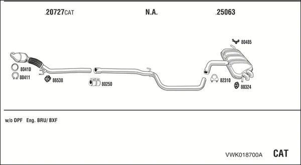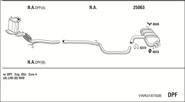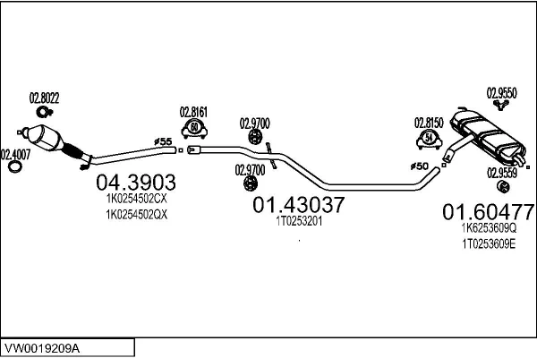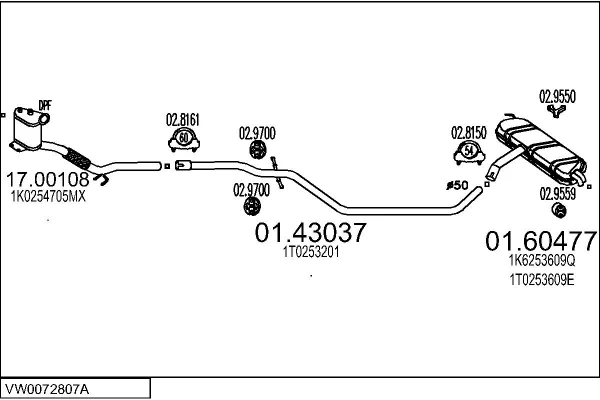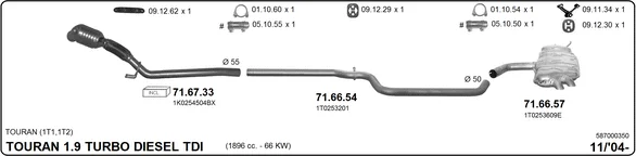 VW TOURAN (1T1, 1T2) 1.9 TDI - Výfukový systém - kompletní od 11/2004 do 5/2010, 1896 ccm, 66 kW, 90 hp, BRU, BXF, BXJ, velkoprostorová limuzína