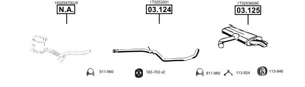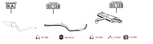 VW TOURAN (1T1, 1T2) 1.9 TDI - Výfukový systém - kompletní od 11/2004 do 5/2010, 1896 ccm, 66 kW, 90 hp, BRU, BXF, BXJ, velkoprostorová limuzína