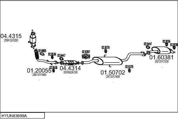 HYUNDAI MATRIX (FC) 1.5 CRDi - Výfukový systém - kompletní od 12/2004 do 8/2010, 1493 ccm, 75 kW, 102 hp, D4FA, velkoprostorová limuzína