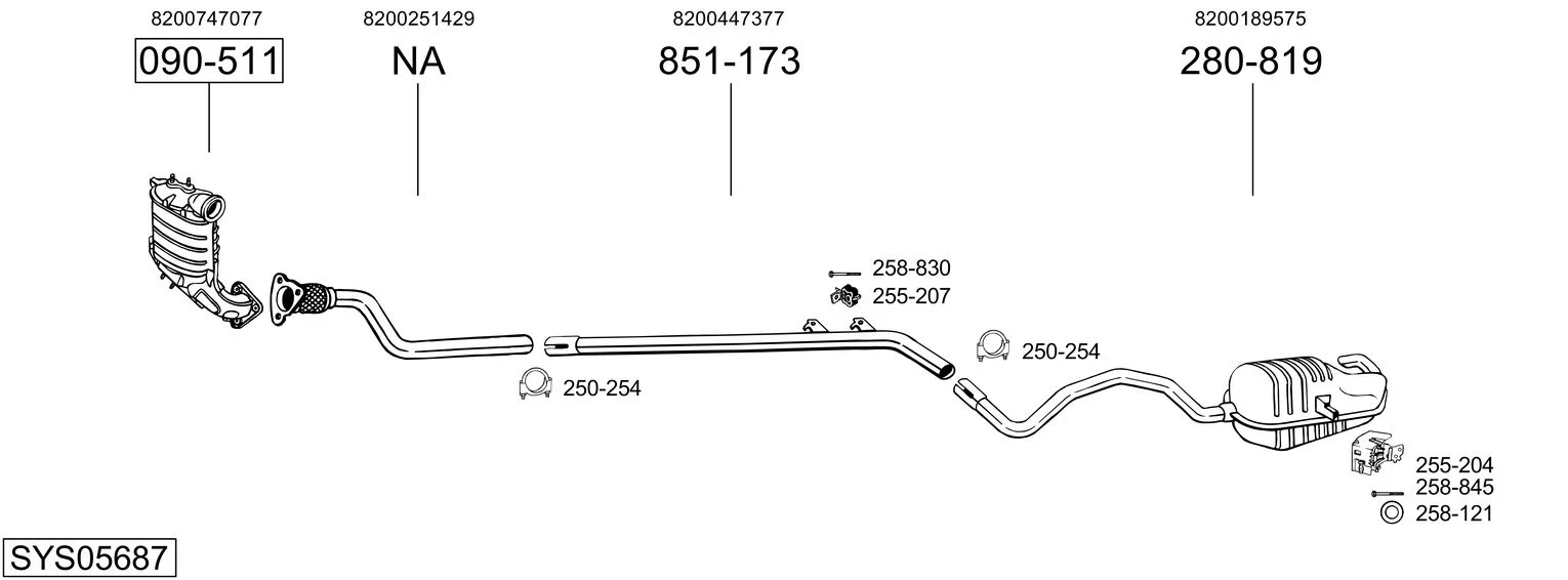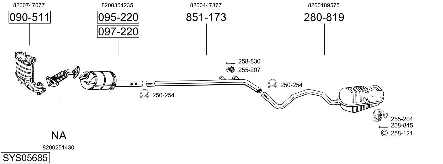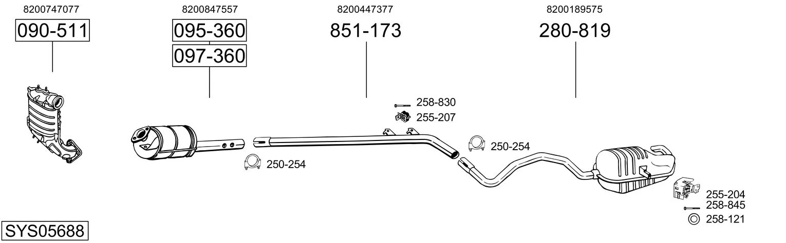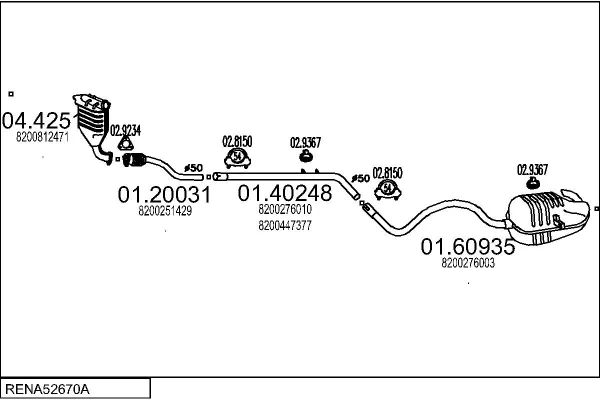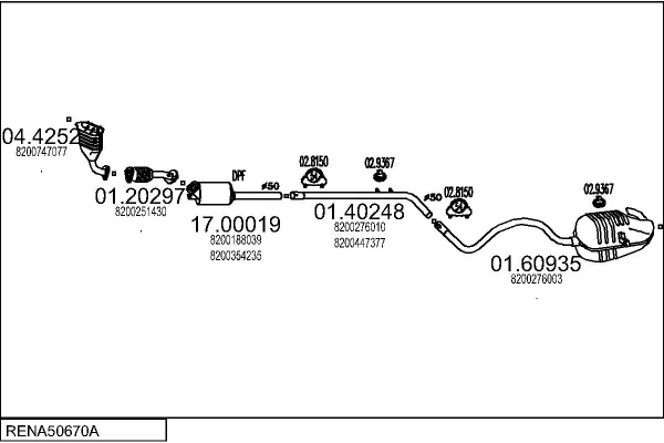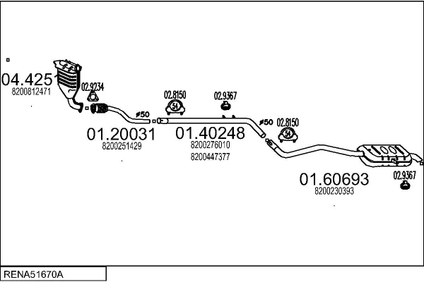 RENAULT MEGANE II limuzína (LM0/1_) 1.9 dCi - Výfukový systém - kompletní od 5/2005, 1870 ccm, 96 kW, 131 hp, F9Q 803, F9Q 804, limuzína