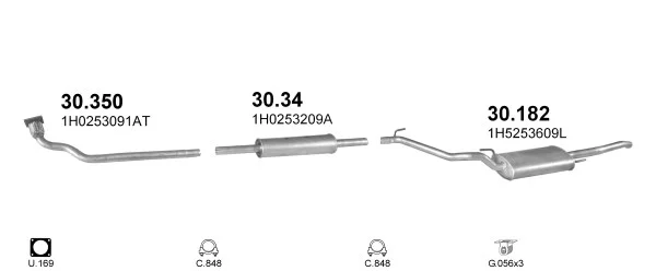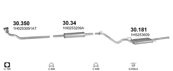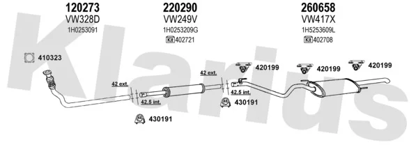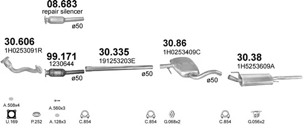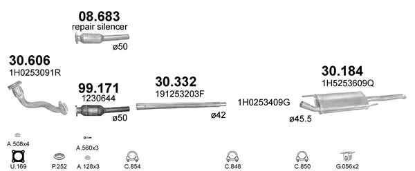 VW VENTO (1H2) 1.9 D - Výfukový systém - kompletní od 11/1991 do 9/1998, 1896 ccm, 48 kW, 65 hp, 1Y, limuzína