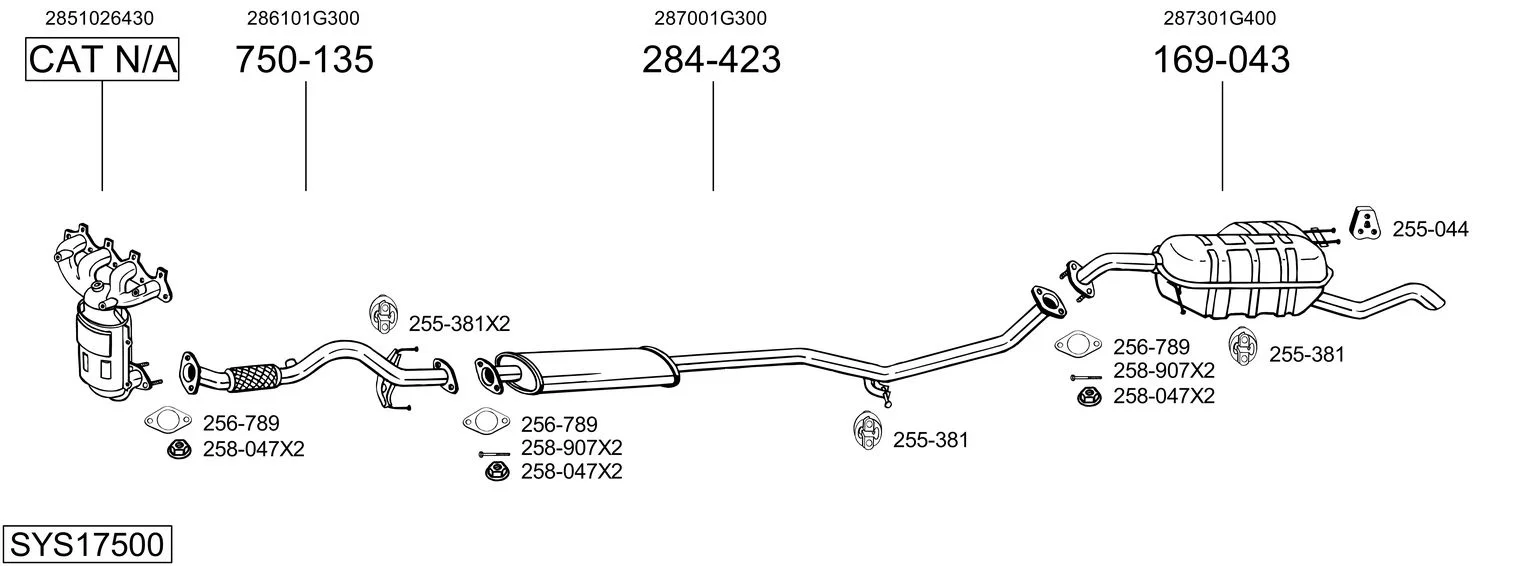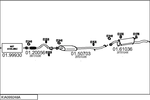 KIA RIO II limuzína (JB) 1.6 16V - Výfukový systém - kompletní od 3/2005 do 12/2011, 1599 ccm, 82 kW, 112 hp, G4ED, limuzína