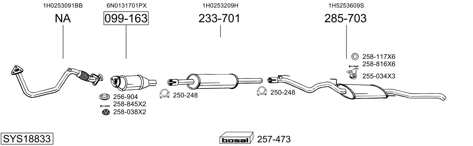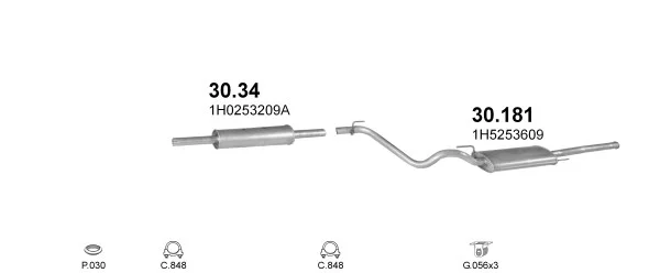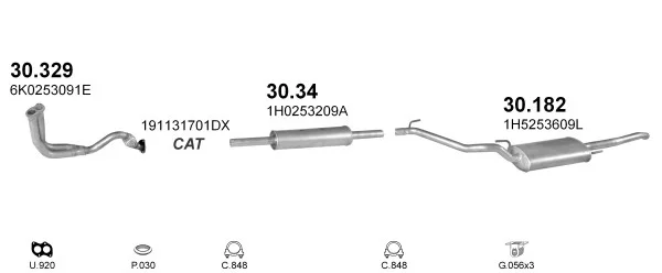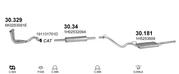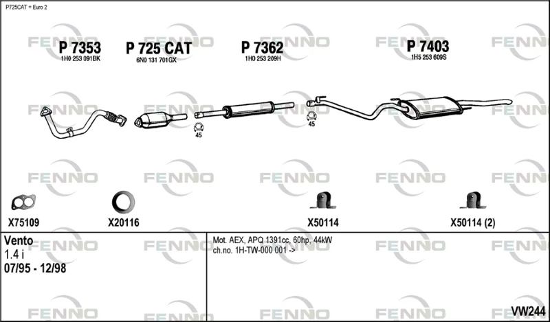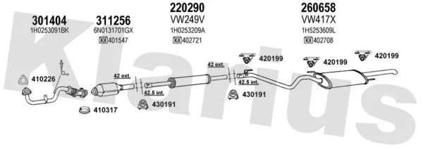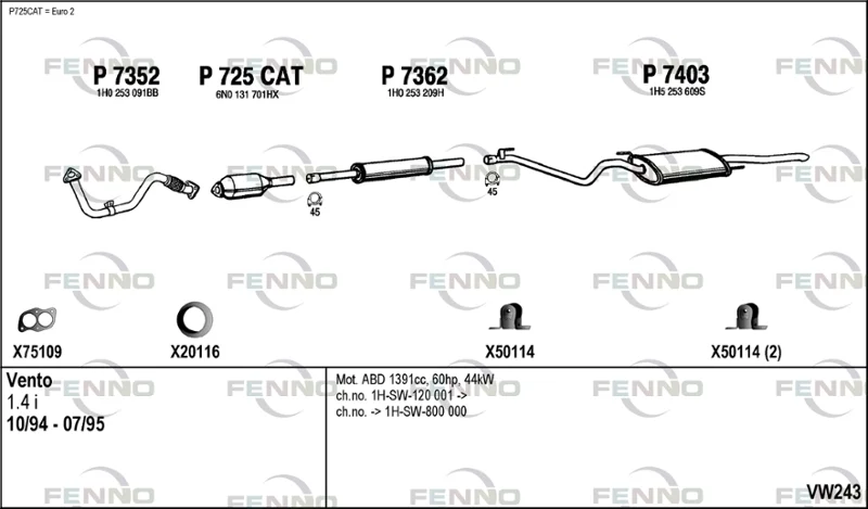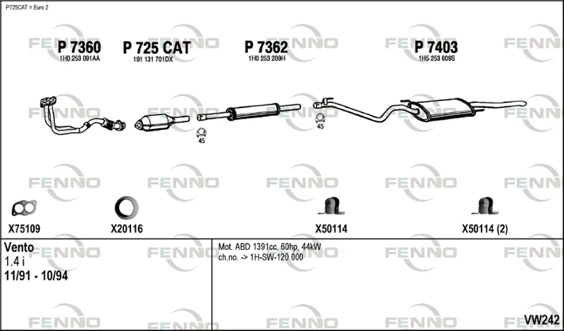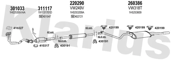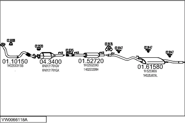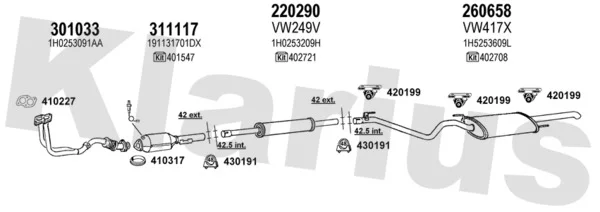 VW VENTO (1H2) 1.4 - Výfukový systém - kompletní od 11/1991 do 9/1998, 1390 ccm, 40 kW, 55 hp, ABD, AEX, limuzína